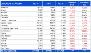 LaboralInfoJobs roza las 212.000 vacantes de empleo en noviembre en EspañaInfoJobs alcanzó un total de 211.723 vacantes de empleo en noviembre en España, un 4% menos que en noviembre de 2024, cuando alcanzaron los 219.765 puestos de trabajo, y un 12% inferior al dato de octubre de 2025, cuando la plataforma reportó 239.603 vacantes
