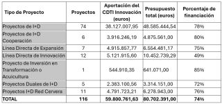 InnovaciónCiencia aprueba cerca 60 millones de financiación para 116 proyectos de I+D, la mayoría impulsados por pymesEl Ministerio de Ciencia comunicó este lunes que, a través del Centro para el Desarrollo Tecnológico y la Innovación (CDTI), aprobó cerca de 60 millones de euros de financiación para 116 proyectos de investigación, desarrollo e innovación empresarial, en una convocatoria marcada por el protagonismo de las pequeñas y medianas empresas y la incorporación de nuevos actores al sistema público de innovación