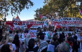 PalestinaAmpliaciónMadrid se inunda de banderas palestinas exigiendo el fin del “genocidio” y la ruptura total con IsraelCerca de 100.000 personas, según la Delegación del Gobierno en Madrid, inundaron este sábado el centro de la capital para exigir el fin del “genocidio” en Palestina, la ruptura con el estado de Israel en todos los ámbitos de relación, especialmente en el comercio armamentístico, y para cargar con dureza contra cualquier “cómplice” de la situación en Gaza