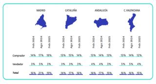 ViviendaLa demanda de compra de vivienda aumenta en Madrid y Cataluña y cae en el resto del país, según FotocasaLa Comunidad de Madrid y Cataluña son las únicas dos regiones en las que crece la demanda de vivienda en propiedad respecto al año pasado, según el análisis 'Experiencia en compraventa 2025', elaborado por el portal inmobiliario Fotocasa, que indica que la intención de compra cae un punto en la media nacional -pasa del 16% en 2024 al 15% este año-