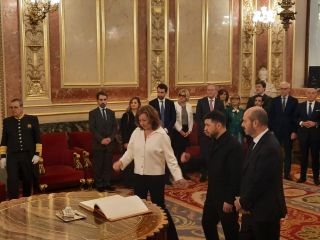 Visita de ZelenskiArmengol muestra a Zelenski los tiros de Tejero y le regala un león de bronce en su visita al Congreso de los DiputadosEl presidente de Ucrania, Volodímir Zelenski, visitó este martes el Congreso de los Diputados y firmó en su Libro de Honor acompañado por la presidenta de la Cámara, Francina Armengol, y por el presidente del Senado, Pedro Rollán. Armengol le enseñó los impactos de bala que quedan en el Hemiciclo con motivo del golpe de Estado y fue obsequiado al final de su visita con un león de bronce que se regala a personalidades insignes