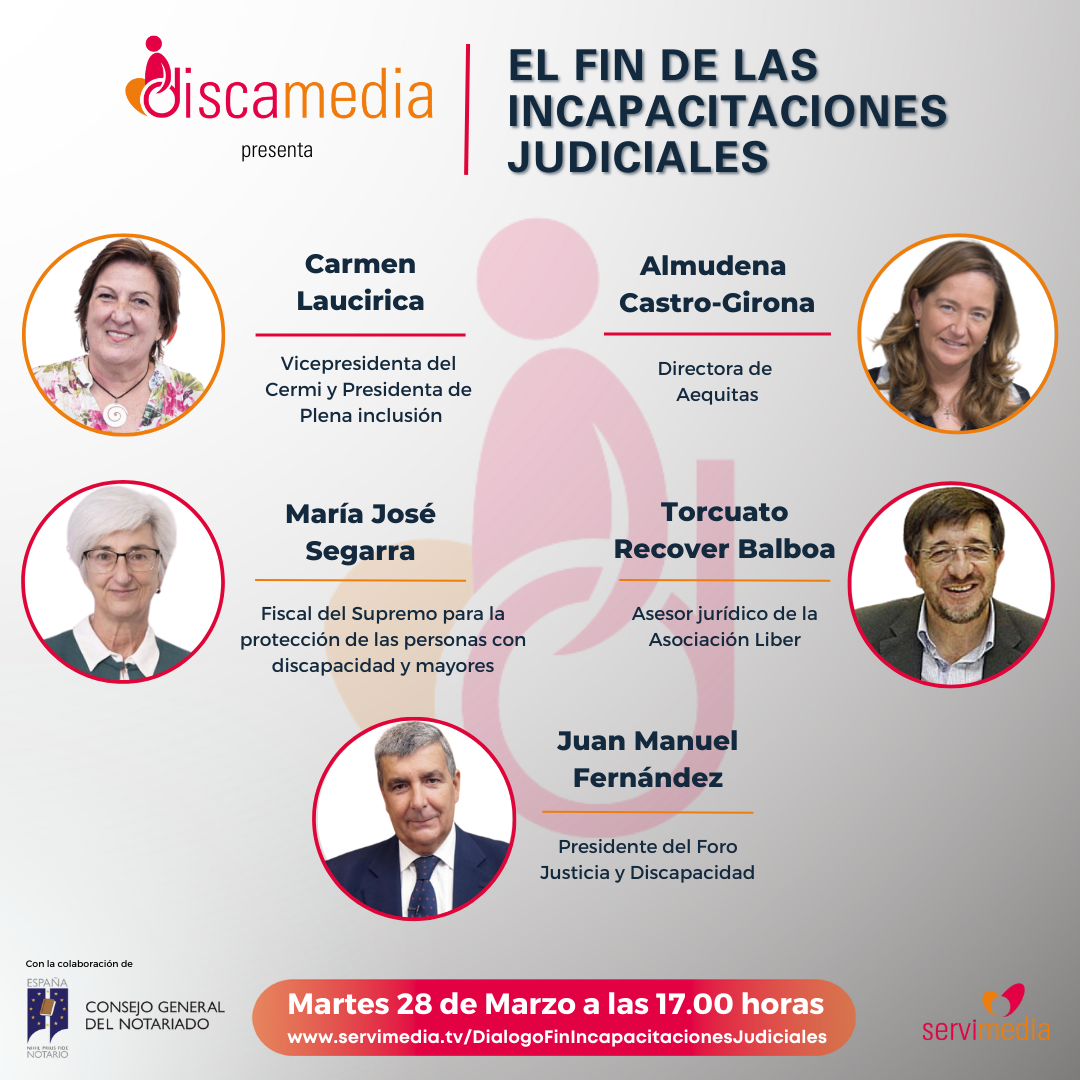 La agencia de noticias Servimedia organiza el martes 28 de marzo a las 17.00 horas un diálogo sobre 'El fin de las incapacitaciones judiciales' en el que se hará un balance de la reforma de la legislación civil y procesal para el apoyo a las personas con discapacidad Ley 8/2001.