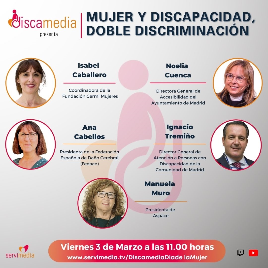 La agencia de noticias Servimedia organiza el viernes 3 de marzo a las 11.00 horas un diálogo sobre 'Mujer y discapacidad, doble discriminación' en el que se abordarán los prejuicios injustificados que sufre esta parte de la población femenina y se buscarán soluciones para tratar de paliar la situación.