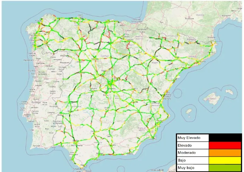 El índice de riesgo de siniestralidad en autopistas y autovías del Estado aumenta por primera vez en 15 años, mientras un total de 3.122 kilómetros de carreteras estatales en España presentan un riesgo elevado o muy elevado, lo que supone un 11,8% del total.