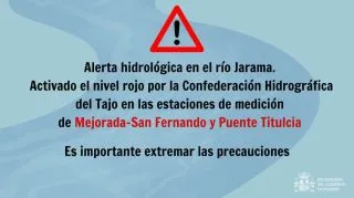 - La Confederación Hidrográfica del Tajo mantiene el nivel rojo del Jarama en Mejorada-San Fernando y Ciempozuelos