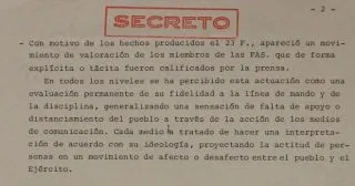 Un informe calificado ‘secreto’ sobre los índices de Subversión en las Fuerzas Armadas (FAS), realizado nueve meses después del intento de golpe de Estado del 23-F, advirtió de “una sensación de falta de apoyo o distanciamiento del pueblo a través de la acción de los medios de comunicación” en los que percibía "sensacionalismo".