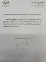 - Unidas por Extremadura registra sus propios candidatos a la Mesa de la Asamblea y no votará a los del PSOE