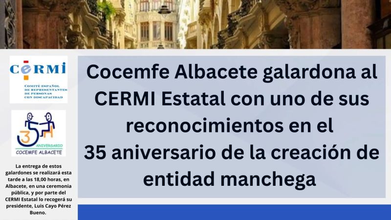 Cocemfe Albacete galardona hoy al Cermi con unos de sus reconocimientos en su 35 aniversario 17 Nov 2025 11:37H Servimedia celebra el miércoles un diálogo en Bruselas para hablar del papel de las cooperativas 16 Nov 2025 18:56H El Comité Paralímpico Español reivindica el deporte como factor de inclusión de las personas con discapacidad 16 Nov 2025 13:11H 3.000 jóvenes vulnerables logran trabajar con un proyecto que combina formación y empleo 16 Nov 2025 11:45H Adif renueva la oficina del servicio Acerca en la estación Puerta de Atocha de Madrid 16 Nov 2025 11:35H La CNSE presenta un decálogo de acciones para fortalecer el papel de las asociaciones 15 Nov 2025 12:06H Las calles de Madrid lucen desde este sábado una 'menina braille' y otra diseñada por niños con autismo 15 Nov 2025 11:05H AICE premia a la Basílica de la Sagrada Familia y al Foro Mundial de la Audición por promover la accesibilidad 15 Nov 2025 09:53H La ONCE celebra los 120 años de la Asociación de la Prensa de Málaga 15 Nov 2025 09:16H Federación ASEM reivindica una atención sociosanitaria integral y más investigación 14 Nov 2025 16:08H 57 menores con parálisis cerebral accederán a atención temprana gracias al 25º Torneo de Pádel Solidario para Empresas 14 Nov 2025 15:09H Cinco millones de cupones de la ONCE conmemoran el 25 aniversario del Fondo Social Europeo 14 Nov 2025 09:30H Pilar Alegría pone en valor el trabajo por la inclusión durante una visita a Down Vigo 13 Nov 2025 18:51H La ONCE celebra los 120 años de la Asociación de la Prensa de Málaga 13 Nov 2025 16:21H El Cermi alerta en el Congreso de que el coste de la vida se incrementa un 40% en familias con menores con discapacidad 13 Nov 2025 15:44H El turrón 'más accesible' destina todos sus beneficios a favor de niños con sordoceguera 13 Nov 2025 13:53H Aice celebrará en Barcelona el Encuentro de la Juventud Implantada Coclear 13 Nov 2025 12:11H El cupón de la ONCE difunde el Día Mundial de la Diabetes 13 Nov 2025 08:17H La asociación Letras Inclusivas "visibiliza y da protagonismo" a escritores con discapacidad 12 Nov 2025 14:22H Los 11 millones del Extra del 11/11 de la ONCE se van a Parla 12 Nov 2025 13:53H Inserta participa en la Feria de Empleo de la Cámara de Comercio de Tarragona 12 Nov 2025 13:28H El Cermi pide que se refuerce la dimensión inclusiva y de accesibilidad de la futura Ley de Administración Abierta 12 Nov 2025 12:27H Cermi CV y Labora atienden a 200 demandantes de empleo con discapacidad en el plazo de un mes 12 Nov 2025 12:20H La Fundación ONCE Baja Visión lanza sus primeras ayudas a la investigación en prevención de la ceguera 11 Nov 2025 15:33H El cupón de la ONCE difunde el Día Mundial de la Diabetes 11 Nov 2025 14:02H Paginación Primera página « Primero Página anterior ‹ Anterior Page 1 Page 2 Page 3 Page 4 Página actual 5 Page 6 Page 7 Page 8 Page 9 … Siguiente página Siguiente > Más vistas ILUNION Hotels presenta la figura del DEIB Coach, que acompaña psicológicamente a sus trabajadores Carrefour y Fundación ONCE entregarán el lunes un vehículo escolar adaptado a Fundación Aenilce El Congreso votará el 11 de diciembre las enmiendas a la totalidad de la reforma de las leyes de dependencia y discapacidad Mañana un diálogo de Servimedia analiza la inclusión en el deporte gracias a LaLiga Genuine Moeve El Ayuntamiento de Madrid expone hoy sus políticas de accesibilidad en un diálogo de Servimedia Ver más