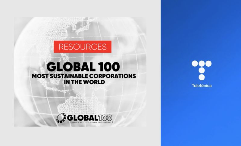 EmpresasTelefónica entra en el 'Global 100' de las empresas más sostenibles del mundoTelefónica ha sido incluida en el 'Global 100', el prestigioso ranking que identifica a las 100 empresas más sostenibles del mundo y que elabora anualmente Corporate Knights. Esta clasificación analiza de forma exhaustiva a 8.229 compañías cotizadas de todo el mundo cuyos ingresos superan los 1.000 millones de dólares, evaluando su desempeño ambiental, social y de buen gobierno.