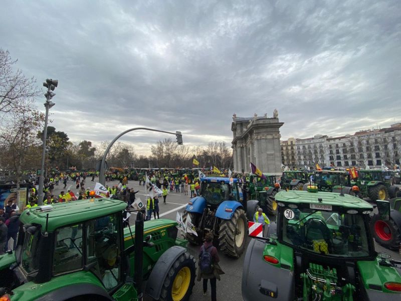 TractoradaMedio millar de tractores llegarán mañana a Madrid para protestar por Mercosur y la PACCerca de 500 tractores confluirán mañana en Madrid para protestar por el tratado de Mercosur y la Política Agraria Común de la Unión Europea, en una marcha que llegará a la capital a través de cinco columnas y discurrirá posteriormente desde la plaza de Colón hasta el Ministerio de Agricultura.