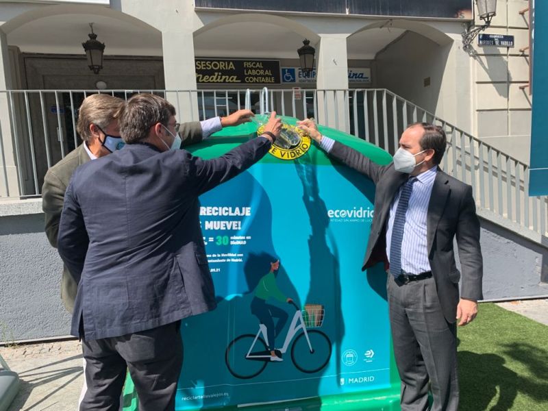ReciclajeEl Ayuntamiento de Madrid y Ecovidrio regalarán 30 minutos de BiciMAD a los abonados que reciclen envases de vidrioEl delegado de Medio Ambiente y Movilidad del Ayuntamiento de Madrid , Borja Carabante, y el director gerente de la EMT, Alfonso Sánchez, acompañados por el director de Marketing de Ecovidrio, Borja Martiarena, presentaron este jueves una acción conjunta del Ayuntamiento y la entidad sin ánimo de lucro Ecovidrio que pretende fomentar el reciclaje y la movilidad sostenible entre la ciudadanía madrileña, que se pone en marcha con motivo de la Semana Europea de la Movilidad.