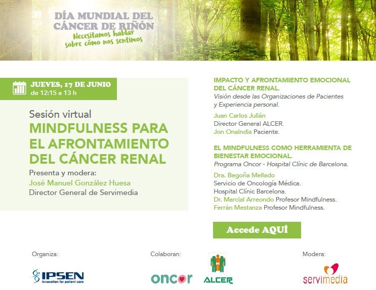 SaludUn diálogo de Servimedia aborda el jueves el Día Mundial del Cáncer de RiñónLa agencia de noticias Servimedia celebra el jueves a las 12.15 horas un nuevo diálogo sobre el Día Mundial del Cáncer de Riñón para analizar esta enfermedad junto a varios expertos y pacientes, así como para conocer cómo se sienten y cuáles son sus necesidades y reivindicaciones.