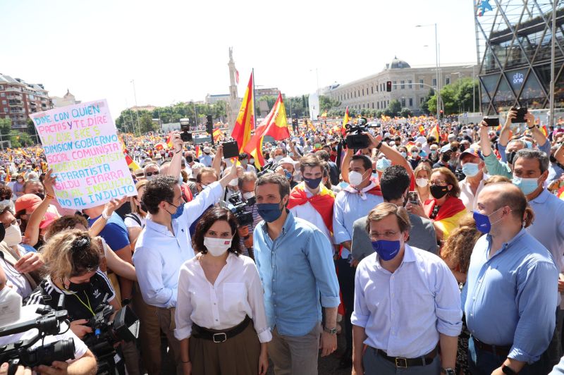 IndultosAbascal defiende la 'foto de Colón' frente a la “foto del Gobierno con los enemigos de España”El líder de Vox, Santiago Abascal, aseguró este domingo que su partido volvía este domingo a manifestarse en la plaza de Colón de Madrid, como ya hizo en febrero de 2019 junto a PP y Ciudadanos, porque “la foto que más nos avergüenza es la del Gobierno con los enemigos de España”.