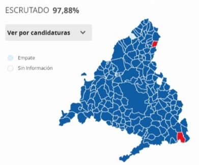 EleccionesEl PSOE gana solo en dos de los 179 municipios de la Comunidad de MadridLa candidatura del PSOE, encabezada por Ángel Gabilondo, ha conseguido vencer únicamente en dos de los 179 municipios con los que cuenta la Comunidad de Madrid, concretamente en Fuentidueña de Tajo y El Atazar.