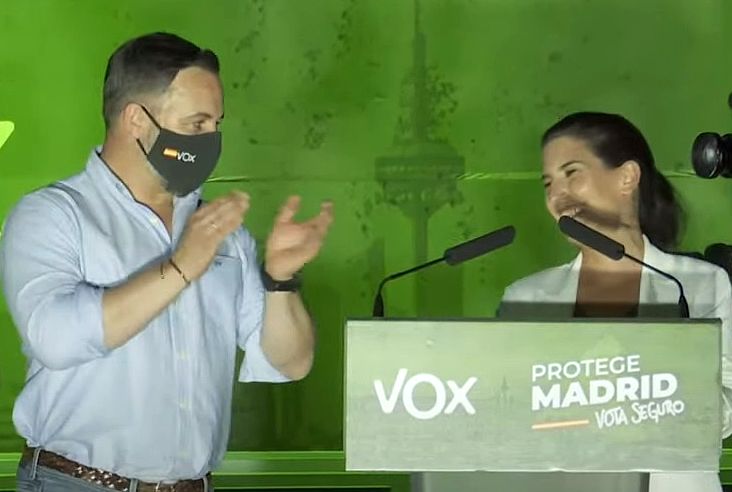 EleccionesAvanceAbascal anuncia que Vox apoyará la investidura de Ayuso en primera votación sin pedir nada a cambioEl líder de Vox, Santiago Abascal, anunció esta noche, tras los comicios madrileños de este 4 de mayo, que su partido apoyará la investidura de Isabel Díaz Ayuso en primera votación sin pedir nada a cambio, puesto que prometieron a sus votantes que su principal objetivo sería que la izquierda no lograra el poder en esta comunidad autónoma.