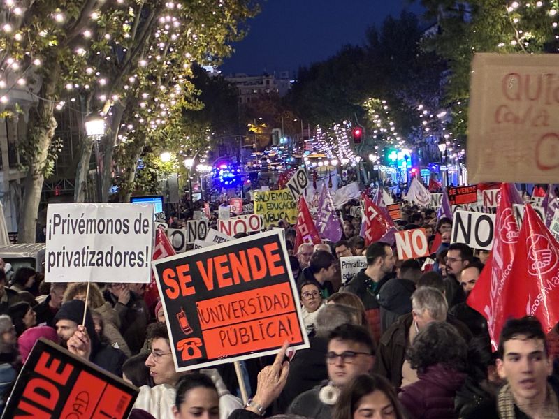 UniversidadesUna manifestación por la universidad pública pide a Ayuso más financiación tras dos días de huelgaEstudiantes, profesores y personal de las seis universidades públicas de la Comunidad de Madrid culminaron este jueves en la Puerta del Sol de la capital dos días de huelga general para pedir más financiación y que el Gobierno de Isabel Díaz Ayuso les tenga en cuenta en la elaboración de la nueva ley de universidades en la que está trabajando.