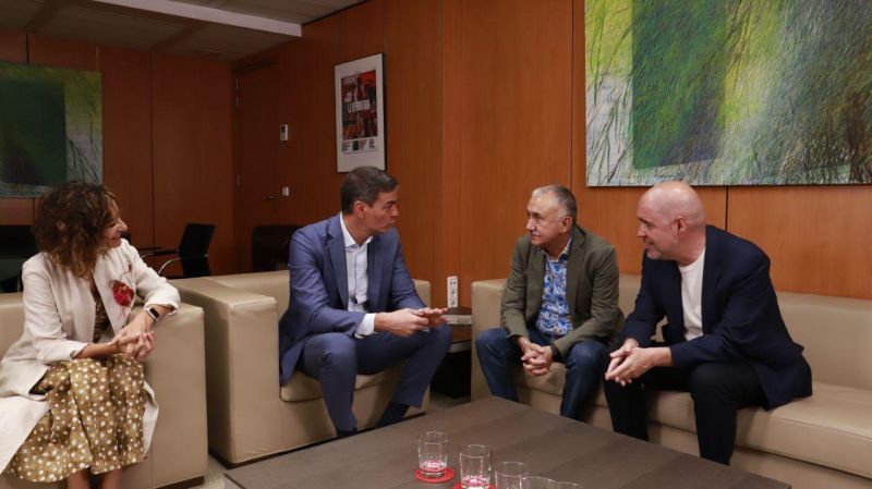 InvestiduraUGT y CCOO mantienen ante Sánchez la posibilidad de apoyar la amnistía y piden reformar el sistema de financiación autonómicaLos secretarios generales de UGT y CCOO, Pepe Álvarez y Unai Sordo, respectivamente, mantuvieron este lunes la puerta abierta a apoyar la amnistía a los implicados en el ‘procés’, pero defendieron que el foco no se ponga solo en ese aspecto concreto, sino en la modificación del sistema de financiación autonómica que, a su vez, debería ir acompañada de una reforma fiscal en profundidad que garantice servicios públicos de calidad.