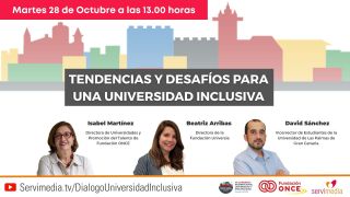 La agencia de noticias Servimedia celebra este martes, a las 13.00 horas, este diálogo para analizar 'Tendencias y desafíos para una universidad inclusiva' junto a Fundación ONCE.
