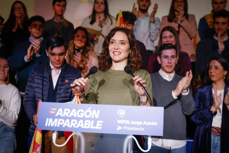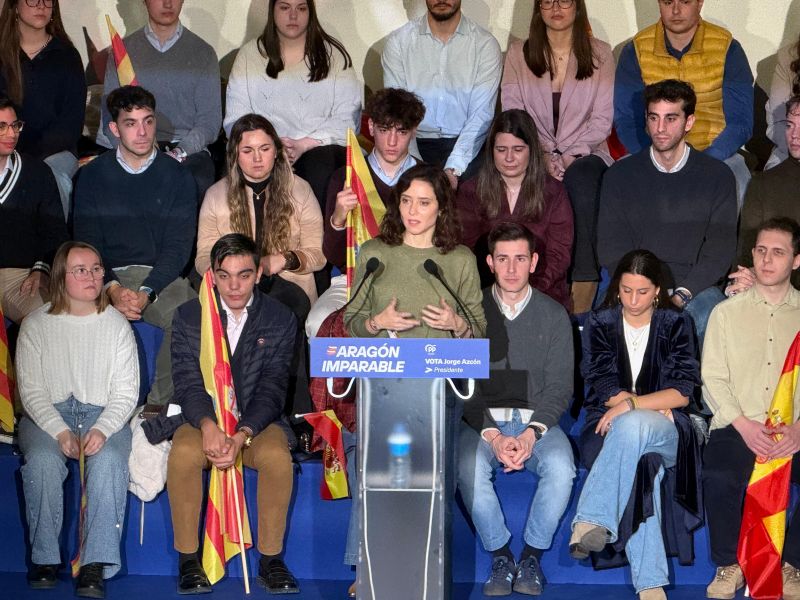 Elecciones AragónAzcón recurre a Ayuso para atraer el voto joven y aplacar la subida de Vox: “Soy de la idea de Isabel”El candidato del PP a la reelección como presidente del Gobierno de Aragón, Jorge Azcón, ha tirado de la presidenta de la Comunidad de Madrid, Isabel Díaz Ayuso, en el primer fin de semana de campaña de las elecciones autonómicas para atraer el voto joven en plena disputa con un Vox en auge.