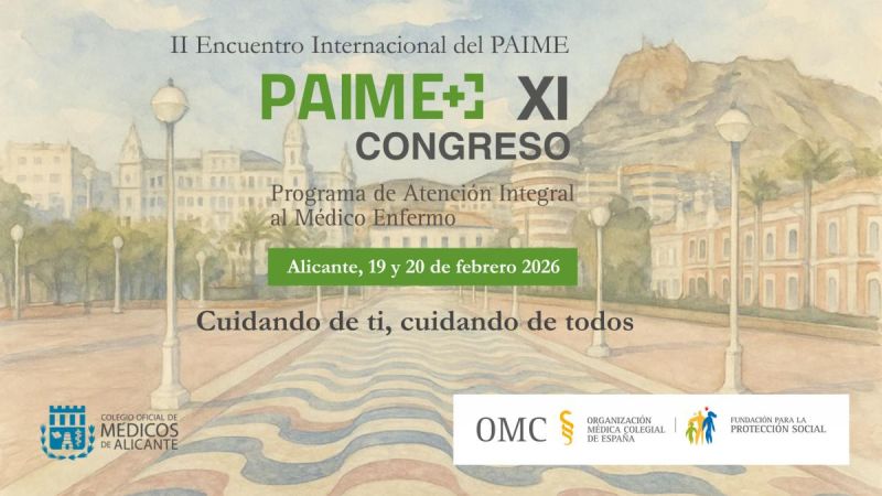 MédicosAlicante acogerá el II Encuentro Internacional y el XI Congreso Nacional Paime en 2026La Fundación para la Protección Social de la OMC (Fpsomc), junto con el Colegio de Médicos de Alicante, organizará el II Encuentro Internacional y el XI Congreso Nacional Paime (Programa de Atención Integral al Médico Enfermo) que tendrán lugar en Alicante el 19 y el 20 de febrero de 2026.