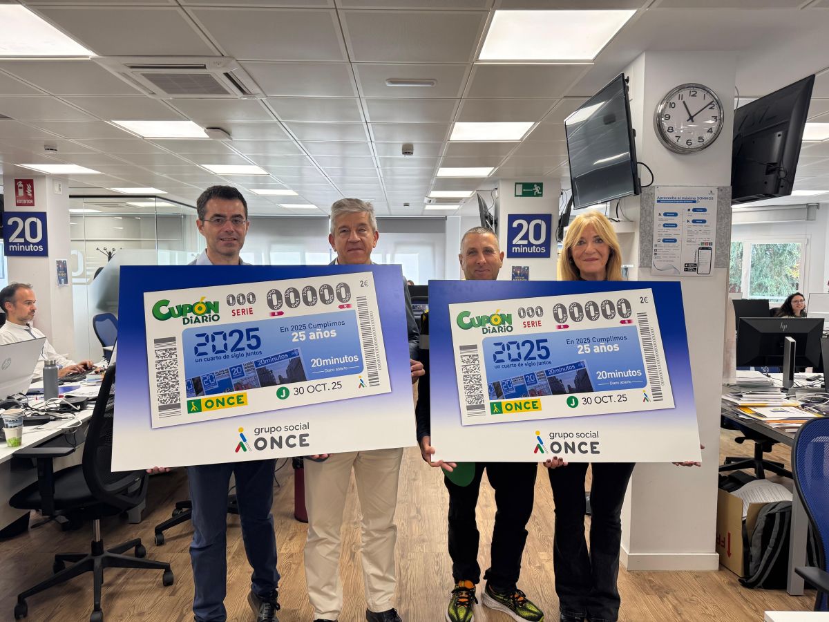 Para ’20minutos’, “tener un cupón conmemorativo de nuestro 25 aniversario es un honor y a la vez un recordatorio de la importancia de nuestro compromiso de la sociedad", dijo Jesús Morales, quien añadió que en el diario están "muy agradecidos a la ONCE por su gesto con ‘20minutos’ y por el apoyo que nos da en este aniversario”.