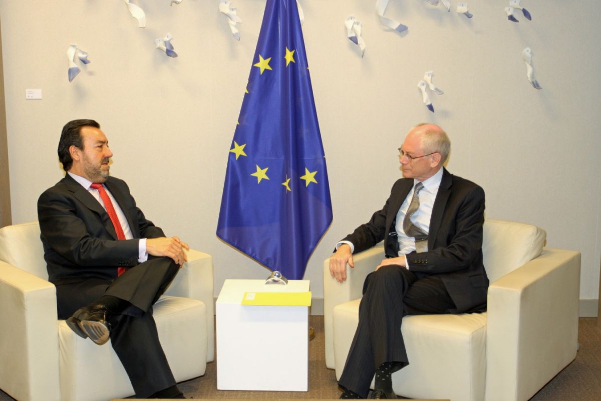 El presidente del Consejo Europea, Herman Van Rompuy, se reunió este jueves en Bruselas con una delegación de la ONCE y su Fundación, encabezada por su presidente, Miguel Carballeda, y ha conocido de primera mano la labor de la Organización española.