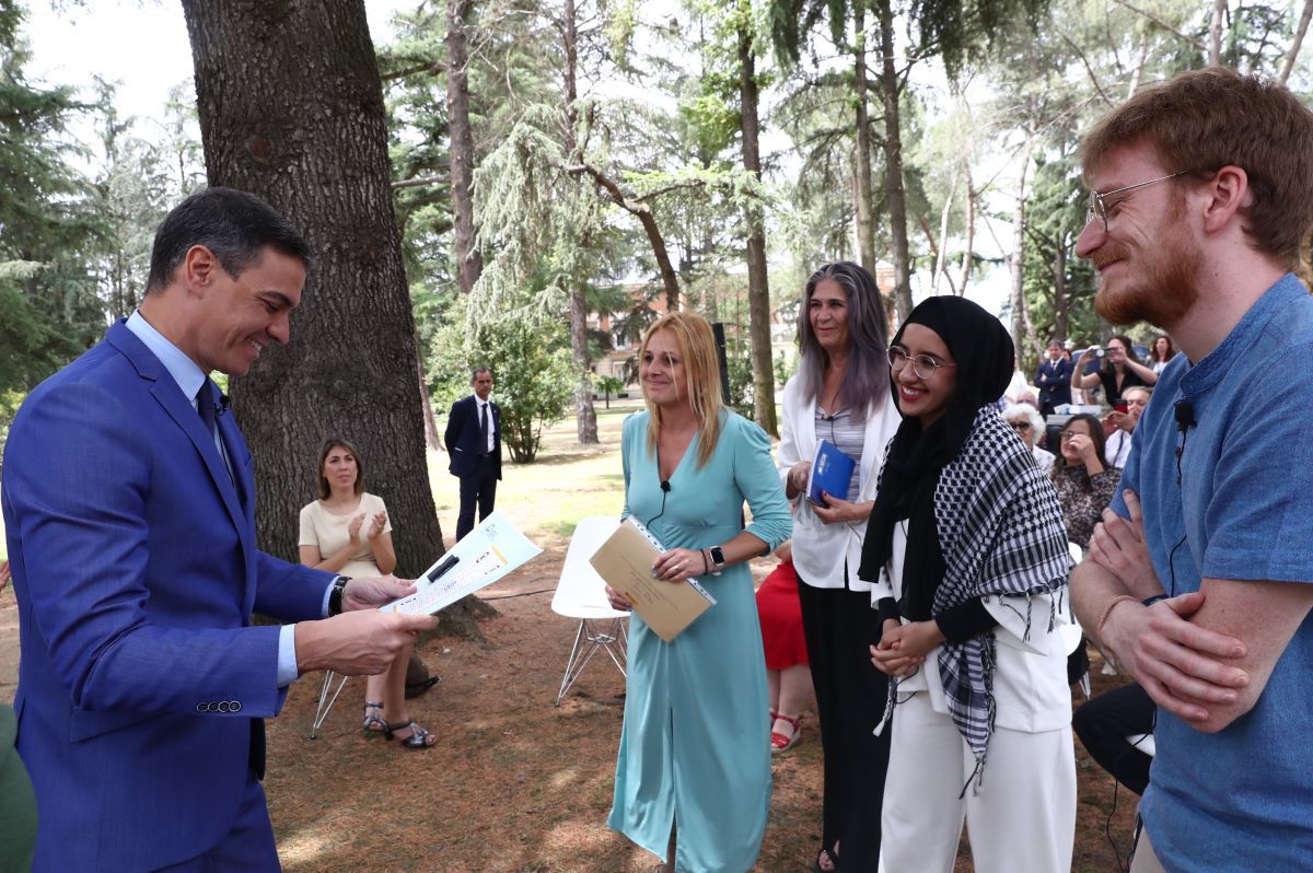 El presidente del Gobierno, Pedro Sánchez, y la entonces ministra para la Transición Ecológica y el Reto Demográfico, Teresa Ribera, recibieron en los jardines del Palacio de la Moncloa a representantes de la Asamblea en julio de 2022, que les trasladaron un informe con 172 recomendaciones enmarcadas en 58 objetivos y organizadas en cinco bloques: consumo; alimentación y usos de suelo; comunidades, salud y cuidados; trabajo, y ecosistemas.