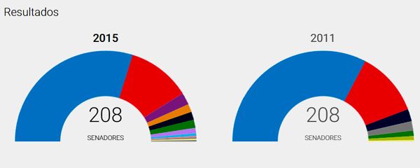De este modo, los populares mantienen la mayoría absoluta en la Cámara Alta a pesar de perder 13 escaños respecto a su resultado conseguido hace cuatro años. Por su parte los socialistas se consolidan como la segunda fuerza obteniendo un senador más que en 2011.