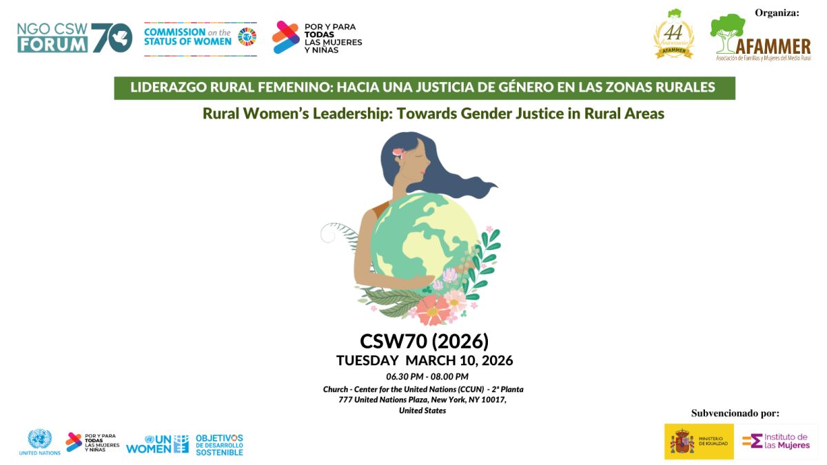 La Asociación de Familias y Mujeres del Medio Rural (Afammer) visibilizará el liderazgo de las mujeres rurales en el 70º periodo de sesiones de la Comisión de la Condición Jurídica y Social de la Mujer (CSW70) que se celebra desde este lunes hasta el 19 de marzo en la sede de Naciones Unidas de Nueva York.