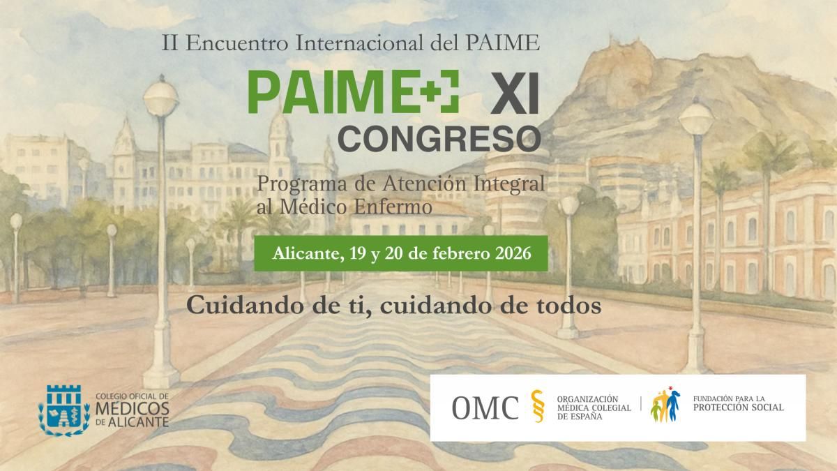 La Fundación para la Protección Social de la OMC (Fpsomc), junto con el Colegio de Médicos de Alicante, organizará el II Encuentro Internacional y el XI Congreso Nacional Paime (Programa de Atención Integral al Médico Enfermo) que tendrán lugar en Alicante el 19 y el 20 de febrero de 2026.