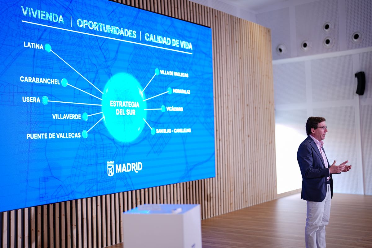 El alcalde de Madrid, José Luis Martínez-Almeida, presentó este lunes la 'Estrategia del Sur', un plan basado en los ejes de vivienda, empleo y calidad de vida con el que el Ayuntamiento de Madrid quiere convertir los distritos del sur y del este de la capital en una "nueva centralidad" económica y productiva que prevé ser el "motor de transformación económica y generación de oportunidades" de la capital en los próximos años.