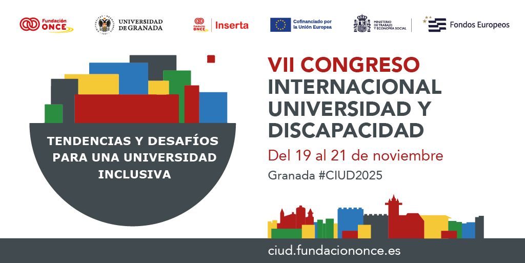 Organizado por Fundación ONCE y la Universidad de Granada, el Congreso cuenta con el apoyo de Inserta Empleo y el Fondo Social Europeo Plus, así como con la colaboración de la Fundación UNIVERSIA, CRUE Universidades Españolas, el Comité Español de Representantes de Personas con Discapacidad (CERMI), el ayuntamiento de Granada, Acciona, Accenture, el Ministerio de Educación, Formación Profesional y Deportes, la Organización de Estados Iberoamericanos para la Educación, la Ciencia y la Cultura (OEI) y el Ministerio de Ciencia, Innovación y Universidades. Se puede obtener más información en 'https://ciud.fundaciononce.es/'.
