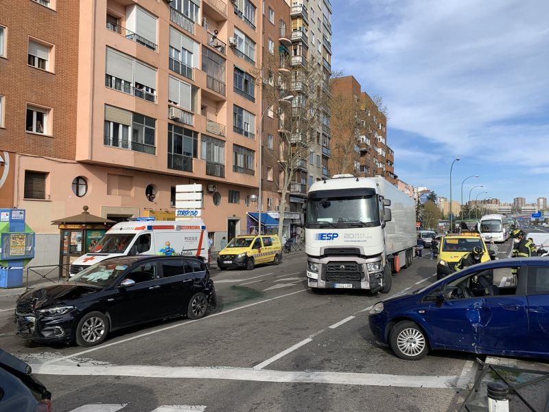 MadridUn camión embiste a siete coches en Conde de Casal y deja ocho heridos levesUn accidente en el que se han visto involucrados un camión de grandes dimensiones y siete turismos ha dejado un total de ocho heridos de carácter leve, de los que siete han tenido que ser trasladados a diversos hospitales.