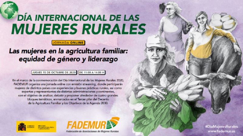 Día de la Mujer RuralMujeres rurales revindican equidad de género y liderazgo en la agricultura familiarLa Federación de Asociaciones de Mujeres Rurales (Fademur) celebra el Día de la Mujer Rural, que se conmemora el 15 de octubre, con una iniciativa 'online' en la que revindica la equidad de género y liderazgo en la agricultura familiar.