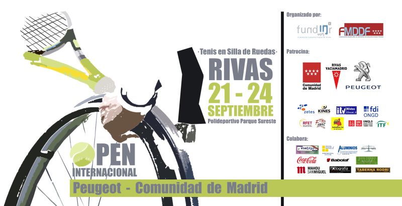 Madrid. Rivas se prepara para el III Open Internacional Peugeot-Comunidad de Madrid de tenis en silla de ruedasLa localidad madrileña de Rivas Vaciamadrid acogerá, del 21 al 24 de septiembre, el III Open Internacional ‘Peugeot-Comunidad de Madrid’ de tenis en silla de ruedas, que cuenta con la participación de 34 jugadores del circuito internacional. El torneo, organizado por la Fundación Discapacitados de Rivas, Fundar y la Federación Madrileña de Deportes para personas con Discapacidad Física, cuenta con el patrocinio principal de Peugeot y la Comunidad de Madrid.