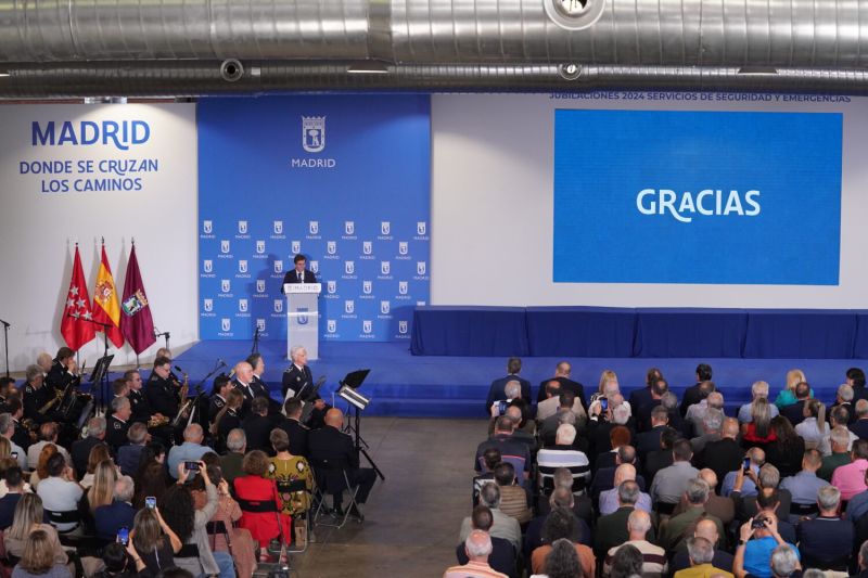 ReconocimientosAlmeida homenajea a los 293 efectivos de Seguridad y Emergencias jubilados en 2024El alcalde de Madrid, José Luis Martínez-Almeida, acompañado de la vicealcaldesa, delegada de Seguridad y Emergencias y portavoz municipal, Inma Sanz, presidió este viernes el acto de homenaje a los 293 profesionales de los servicios municipales de Seguridad y Emergencias que se jubilaron a lo largo de 2024, reconociendo así su entrega, profesionalidad y compromiso con la ciudad durante décadas de servicio público.