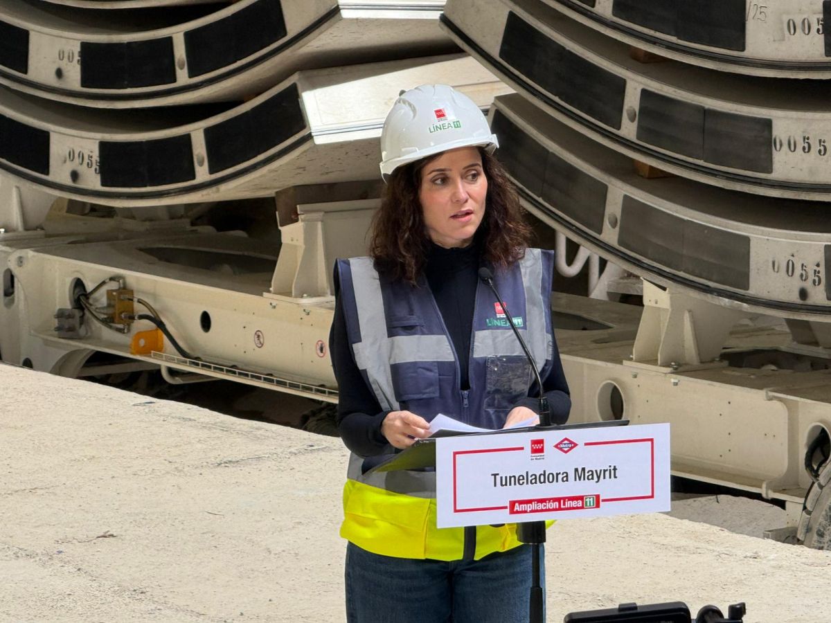 La presidenta de la Comunidad de Madrid, Isabel Díaz Ayuso, visitó este jueves el comienzo de la perforación de cerca de seis kilómetros de la Línea 11 de Metro con la tuneladora ‘Mayrit’, un proyecto que permitirá incorporar cinco nuevas estaciones y mejorar la conectividad del sur y este de la capital.