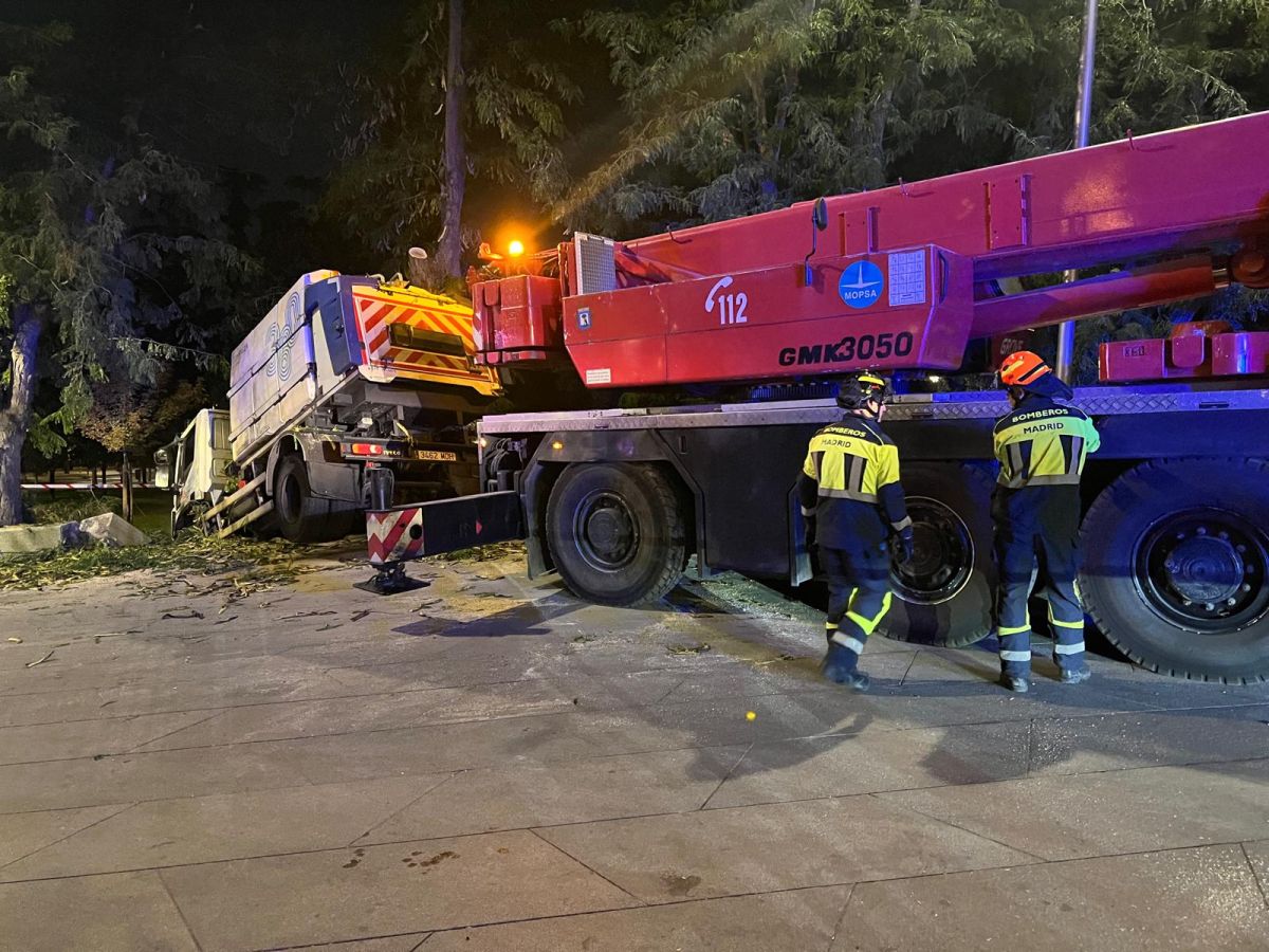 - Los bomberos tuvieron que hacer una una maniobra compleja con una grúa de gran tonelaje para sacar la baldeadora