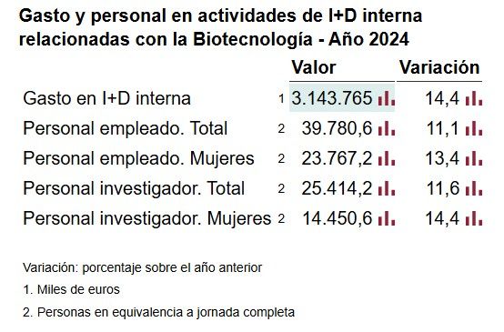 Cataluña, la Comunidad de Madrid y Andalucía concentraron el 67,4 % del gasto en actividades de I+D interna relacionadas con la biotecnología, según los últimos datos publicados este jueves por el Instituto Nacional de Estadística (INE), correspondientes al 2024, ultimo ejercicio analizado.