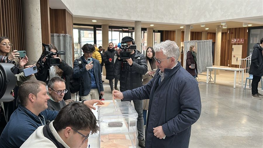 El candidato ejerció su derecho a voto en el Centro de Formación Profesional Pico Frentes de Soria acompañado de parte de su candidatura y de simpatizantes de Soria Ya.