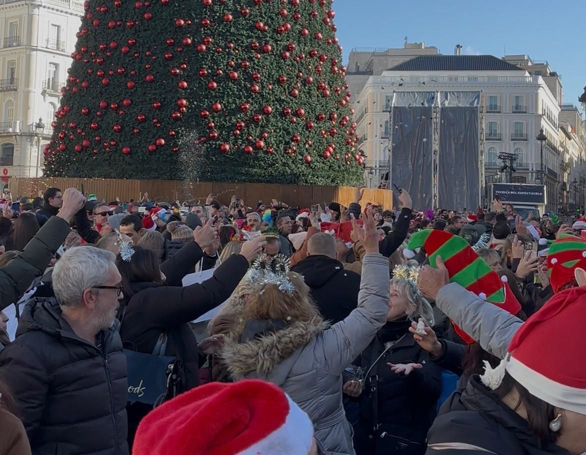 Centenares de visitantes celebran las primeras preúvas en la Puerta del Sol