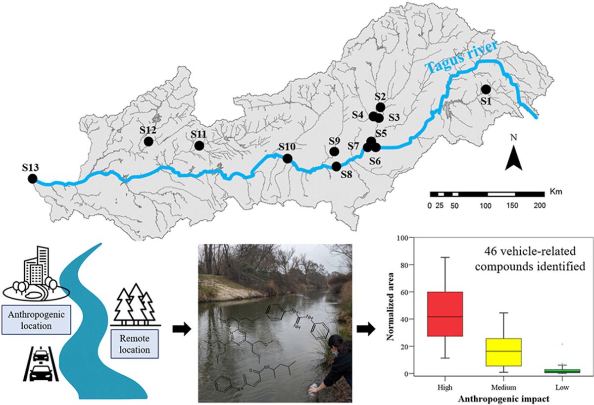 Un estudio desarrollado por el Centro de Investigaciones Energéticas, Medioambientales y Tecnológicas (Ciemat) advierte sobre la detección de más de 40 contaminantes emergentes asociados al tráfico rodado en la cuenca del Tajo. Algunos de estos compuestos, procedentes del desgaste de neumáticos, frenos y otros componentes, "son tóxicos y con potencial de afectar negativamente a los ecosistemas acuáticos".
