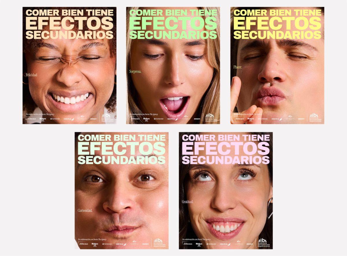 La campaña subraya "la influencia de la gastronomía en los sentimientos, y no solo en las sensaciones. Es lo que quieren expresar las caras de los carteles. No dejar de leer la palabra que figura en cada cara".