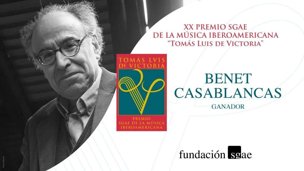 El compositor catalán Benet Casablancas ha obtenido el XX Premio SGAE de la Música Iberoamericana Tomás Luis de Victoria 2025, que convoca de forma bienal la Fundación la Sociedad General de Autores y Editores (SGAE) y cuya dotación es de 20.000 euros.