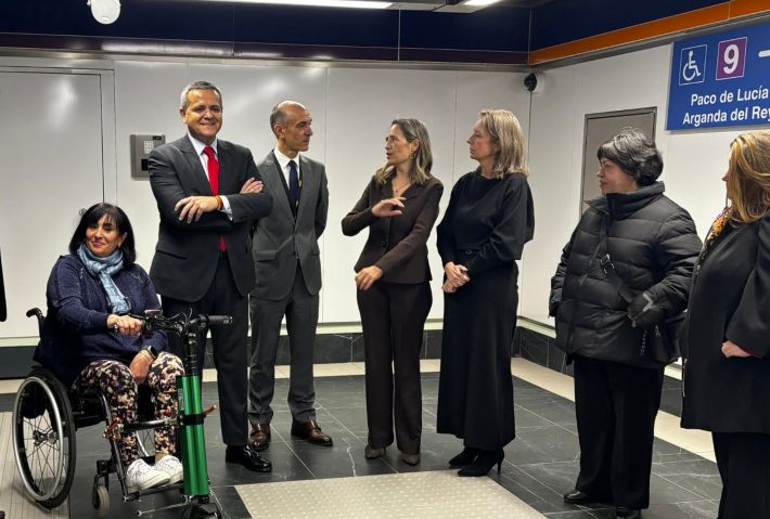 El consejero de Vivienda, Transportes e Infraestructuras, Jorge Rodrigo, visitó este viernes el intercambiador junto a la secretaria general del Cermi de la Comunidad de Madrid, María Teresa Rodríguez; la directora del Cermi de la Comunidad de Madrid, María Jesús Baile; la presidenta del Cermi de la Comunidad de Madrid, Mayte Gallego; el presidente del Cermi Estatal, Luis Cayo Pérez Bueno; el consejero delegado de Metro Madrid, Ignacio Vázquez; y las concejalas presidentas de los distritos de Salamanca y Chamartín.