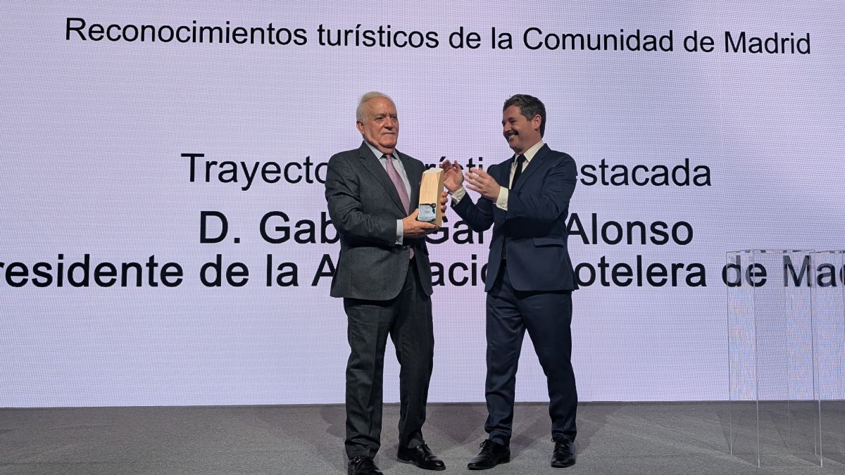 La Consejería de Cultura, Turismo y Deporte de la Comunidad de Madrid otorgó este jueves a Gabriel García Alonso, presidente de la Asociación Empresarial Hotelera de Madrid (AEHM), el premio ‘Trayectoria Turística’ por “más de cinco décadas dedicadas a impulsar la excelencia y la competitividad del sector hotelero y el destino Madrid”.