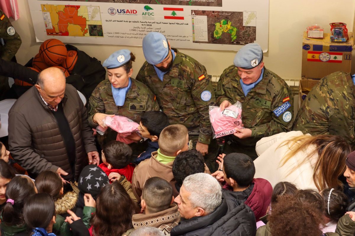 Los cascos azules españoles de la misión Unifil de la ONU en Líbano entregaron artículos deportivos, juguetes y material escolar para los niños de la localidad de Kleyaa, gracias a la colaboración con diversas entidades españolas.