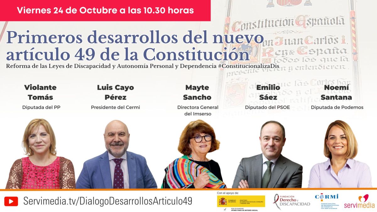 La agencia de noticias Servimedia celebrará el viernes 24 de octubre a las 10.30 horas un diálogo para conversar con cinco expertos sobre los 'Primeros desarrollos del nuevo artículo 49 de la Constitución'.