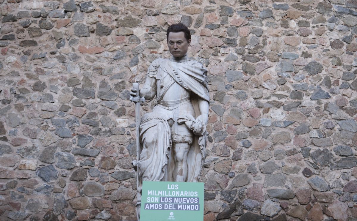 Elon Musk se convierte en el rostro del neofeudalismo en una intervención artística de Oxfam Intermón