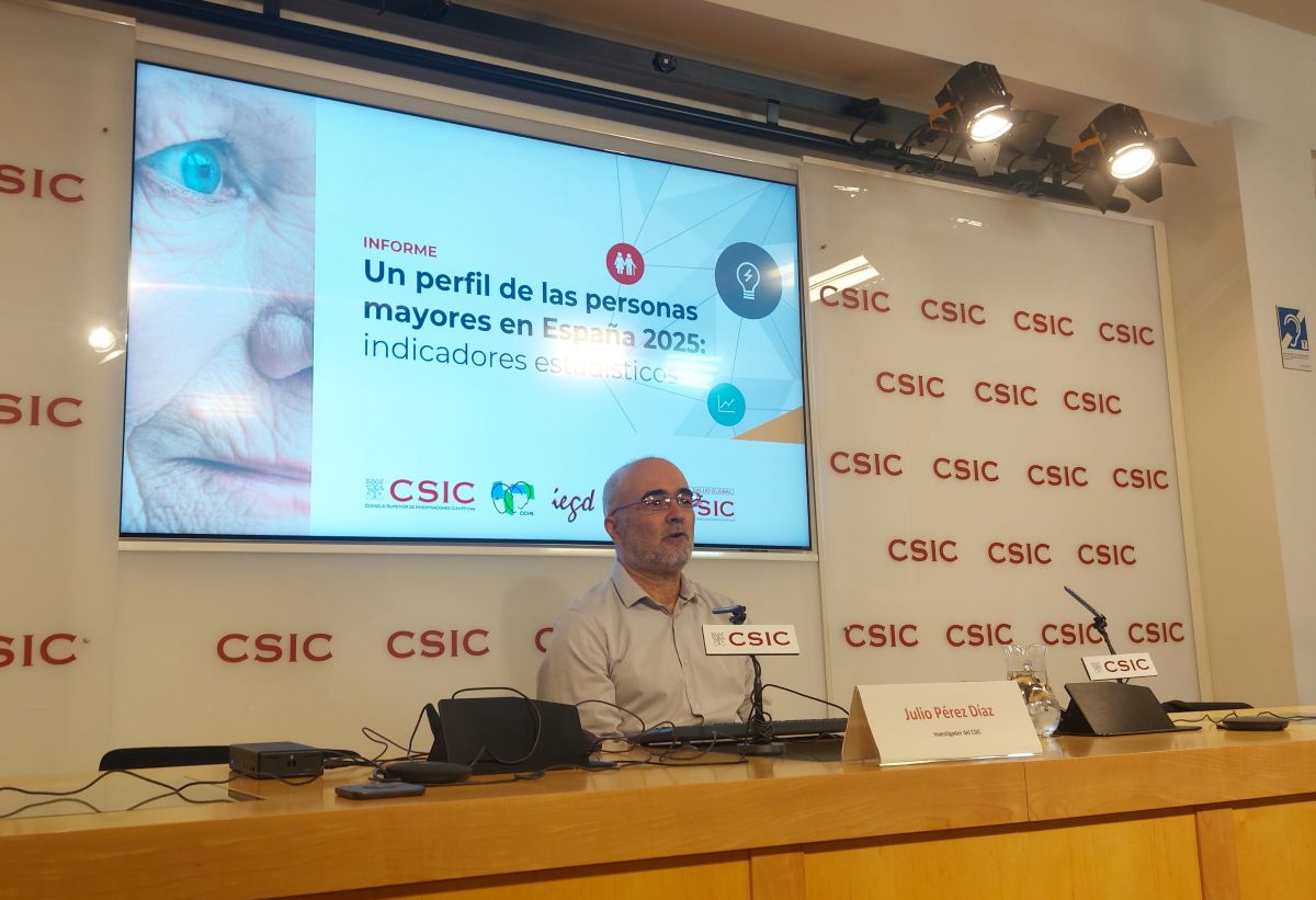 Este demógrafo intervino como representante principal del Departamento de Población del Consejo Superior de Investigaciones Científicas (CSIC), organismo dependiente del Ministerio de Ciencia, Innovación y Universidades, que tras haber analizado durante años estadística y demográficamente "las condiciones de vida de las personas mayores en España" presentó hoy el informe 'Un perfil de las personas mayores en España 2025'. La iniciativa fue impulsada por el proyecto 'Envejecimiento en red', y cuenta con el apoyo y la financiación de la PTI+ Salud Global del CSIC, informó el propio organismo.